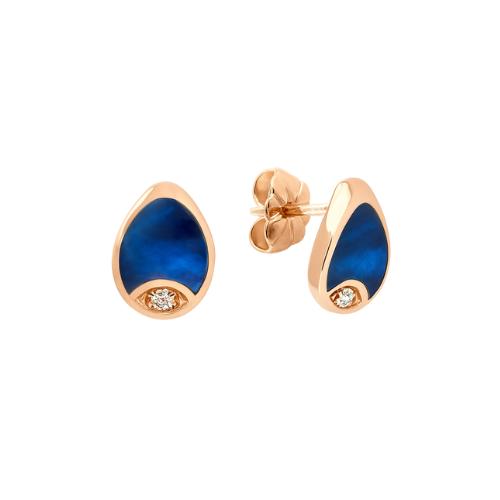 Splendide Boucles d'Oreilles en Or Rose 750/1000 (18 Carats) du Créateur Français Alain Clozeau, Pour Femme en Résine Nacrée Bleu de Prusse.