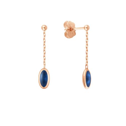 Splendide Boucles d'Oreilles Pendante en Or Rose 750/1000 (18 Carats) de la Collection Samba du Créateur Français Alain Clozeau, Pour Femme en Résine Nacrée Bleu de Prusse.