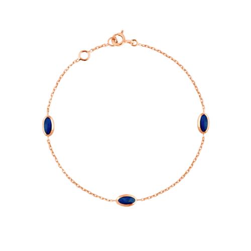 Bracelet en Or Rose 750/1000 (18 Carats) de la Collection Samba du Créateur Français Alain Clozeau, Pour Femme en Résine Nacrée Bleu de Prusse.