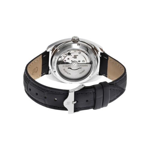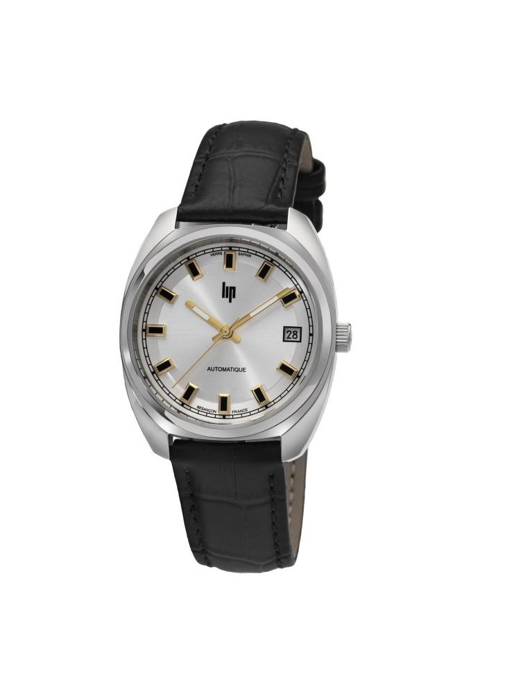 Montre LIP Général de Gaulle Automatique 35 mm en Cuir Noir Façon Crocodile et Acier Poli, Équipée d’un Mouvement Automatique Miyota 8215 Avec Réserve de Marche de 42 Heures. Cadran Argenté Soleillé, Aiguilles Dorées et Index Bâtons Noirs et Dorés. Verre Saphir Plat Traité Antireflet, Fond de Boîte Transparent Vissé, Couronne Poussée. Livraison France Métropolitaine et Corse Offerte. Bijouterie Cupillard Belfort : Revendeur Officiel des Montres Lip. 671880