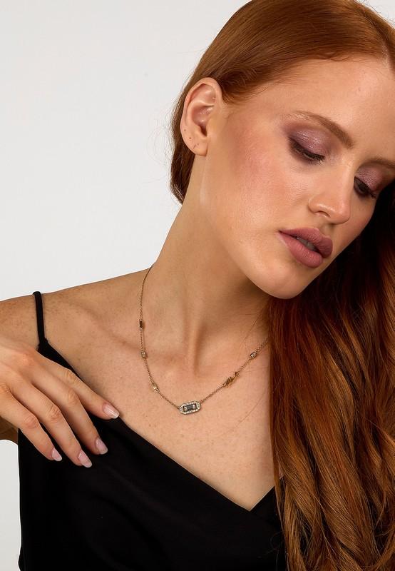 • Conçu en Acier Finition PVD Or Jaune, ce Collier Allie Finesse et Durabilité pour un Porté Confortable au Quotidien. Les Cristaux, Subtilement Intégrés le Long de la Chaîne et Autour du Motif Central Rectangulaire, Captent la Lumière et Apportent une Touche d’Éclat Discrète et Élégante.