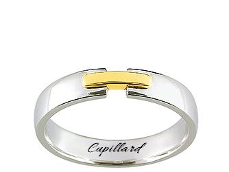 Alliance de mariage bicolore mixte polie en or jaune et or gris palladié rhodié 750/1000 (18 carats), Girard.