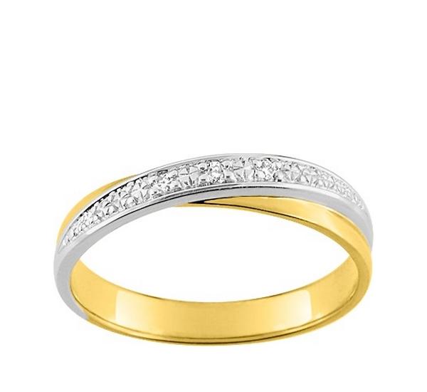 Alliance de mariage femme créative bicolore, or jaune et or blanc palladié 750/1000 (18 carats) diamants naturels, Girard.