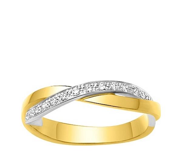Alliance de mariage femme créative bicolore or jaune et or blanc palladié 750/1000 (18 carats), Girard.