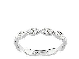 Alliance de mariage femme diamants naturels perlée en or blanc palladié et rhodié 750/1000 (18 carats), Girard.