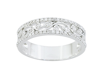 Alliance demi-tour de mariage dame contemporaine en or blanc palladié 750/1000 (18 carats) et diamant naturel, Girard.