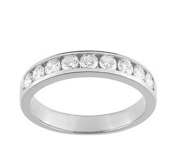 Demi alliance femme diamant naturel rail en or gris palladié rhodié 750/1000 (18 carats), composée de 9 diamants naturels pour un poids total de 0,70 carat de couleur H et de pureté SI.