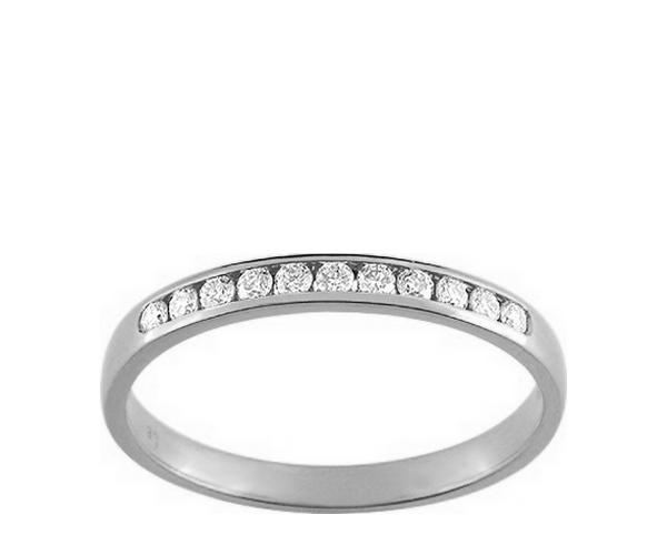 Demi alliance Dame diamant naurel rail en or gris palladié rhodié 750/1000 (18 carats), sertie de 11 diamants naturels pour un poids total de 0,15 carat de couleur H et de pureté SI.