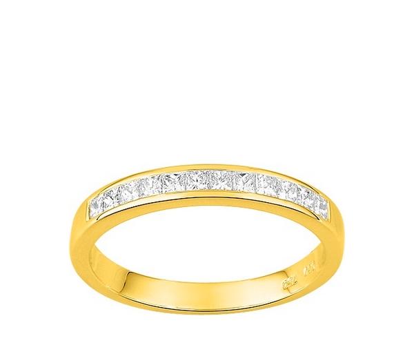 Demi alliance diamant naturel princesse serti rails en or jaune 750/1000 (18 carats), composée de 13 diamants carrés pour un poids total de 0,50 carats en couleur H et pureté SI, Girard.