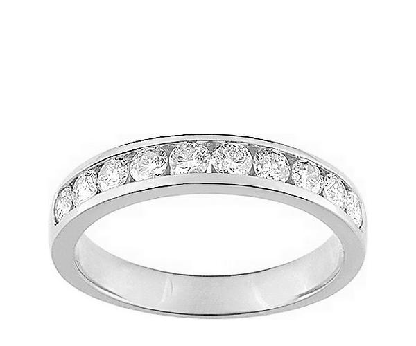 Demi alliance, diamants naturels serti rail en or gris palladié rhodié 750/1000 (18 carats), composée de 10 diamants naturels pour un poids total de 0,60 carat de couleur H et de pureté SI.