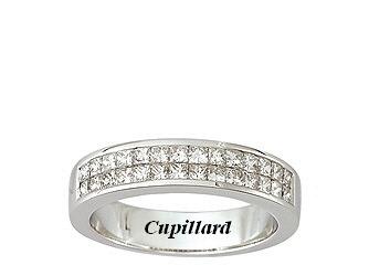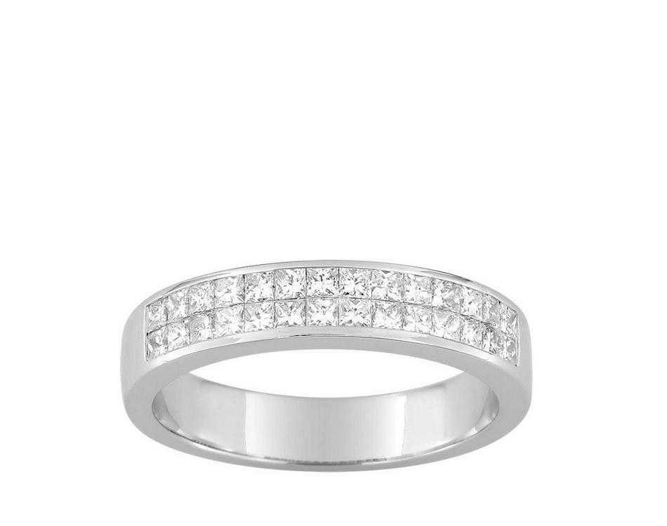 Alliance femme diamant naturel en or gris palladié et rhodié 750/1000 (18 carats), sertie de deux rangées de diamants naturels princesses (28 pierres) pour un poids total de 0.60 carat en couleur H et pureté SI.