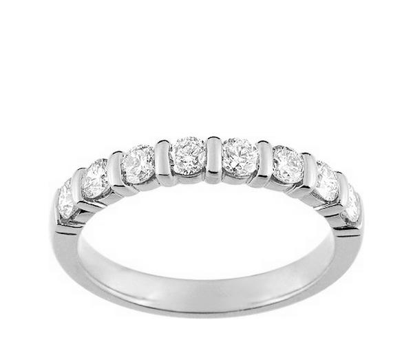 Idéale pour votre mariage ou anniversaire de mariage, demi alliance diamant naturel serti barrette en or gris 750/1000 (18 carats) palladié et rhodié, composée de 8 diamants naturel pour un poids total de 0,65 carat de diamant en couleur H et pureté SI.