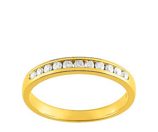 Demi alliance femme diamant naturel sertie rail or jaune 750/1000 (18 carats), sertie de 11 diamants naturels pour un poids total de 0,20 carat de diamants de couleur H et de pureté SI.