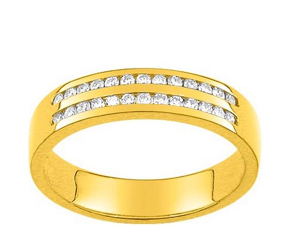 Demi alliance diamants naturels sertis rails sur deux rangs en or jaune 750/1000 (18 carats), 26 diamants naturels pour un poids total de 0,20 carat en qualité H-SI.