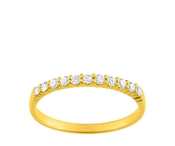 L'alliance demi-tour est un classique raffiné, offrant le confort d'un anneau en or et l'éclat subtil des diamants. Elle est la promesse d'un amour qui brille chaque jour.