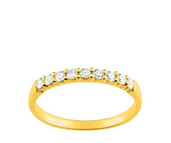Demi alliance diamants en or jaune 750/1000 (18 carats), 9 diamants naturels sertis griffes pour un poids total 0,23 carat de couleur H et de pureté SI.