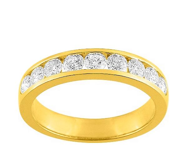 Demi alliance diamant naturel rail en or jaune 750/1000 (18 carats), sertie de 9 diamants naturels pour un poids total de 1 carat, diamants de couleur H et de pureté SI, Girard.