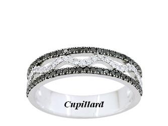 Alliance de mariage femme demi tour diamant naturel blanc et noir en or gris palladié et rhodié 750/1000 (18 carats), Girard.