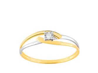 Bague bicolore en or jaune et en or gris rhodié 375/1000 (9 carats) solitaire diamant pastillé 0.018 carat serti sur une monture 4 griffes.