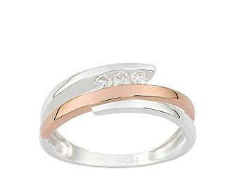 Bague Trilogie Diamants Or 750 Bicolore Gris Et Rose 750