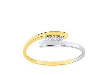 Bague femme en or bicolore 375/1000 (9 carats) jaune et gris rhodié, Trilogie diamants pastillés ( 0.016 carat au total),