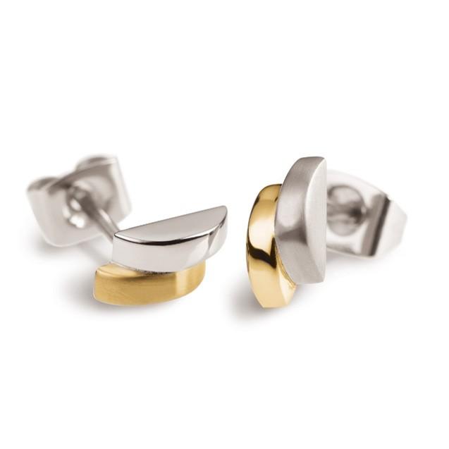 Boucles d'oreilles femme Boccia en titane mat et plaqué or poli.