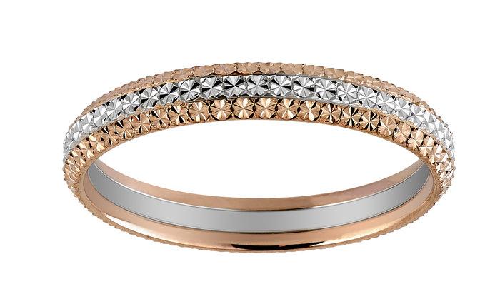 Scellez Votre Amour avec cette Alliance Bicolore en Or Rose et Or Gris 750. Son Effet Diamanté tout Autour de l'Alliance Captent la Lumière pour Symboliser l’Éclat de votre Union. Un Bijou Intemporel pour un Mariage Inoubliable.