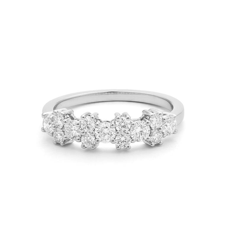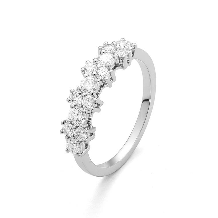 Alliance femme diamant naturel serti griffes en or gris palladié rhodié 750/1000 (18 carats), Facet.