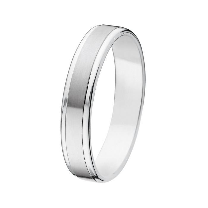 Anneau de mariage homme en or blanc palladié et rhodié 750/1000 (18 carats) poli avec partie centrale brossée, Fairbelle.
