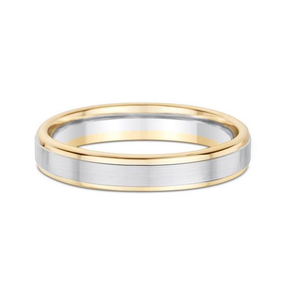 Alliance Mixte bicolore en or jaune poli 750/1000 (18 carats) sur les bords et en or blanc palladié rhodié et brossé au centre, Fairbelle.