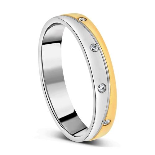 Offrez à votre moitié l’éclat d’une alliance en or bicolore 750/1000 (18 carats) . L’harmonie parfaite de l’or jaune et de l’or gris palladié rhodié, rehaussée par de précieux diamants naturels, incarne la force et la beauté de votre amour.