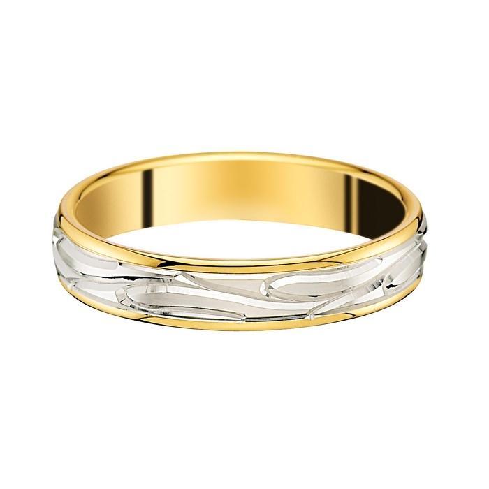 Alliance de mariage Faibelle pour femme bicolore en or jaune et or gris palladié rhodié 750/1000 (18 carats) polis.