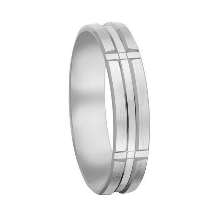 Alliance de mariage homme en or blanc palladié et rhodié 750/1000 (18 carats) mate avec partie centrale polie, Fairbelle.