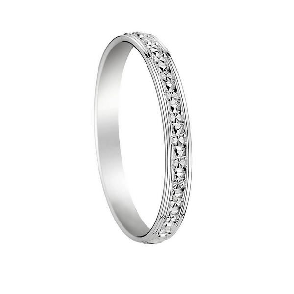 Élégante et Sophistiquée, cette Alliance en Or Gris 18K (750/1000) Palladié et Rhodié se Distingue par son Facettage Brillant, Créant un Effet Diamanté Éclatant. Sa Finition Polie Rehausse son Éclat et lui Apporte une Touche de Raffinement.