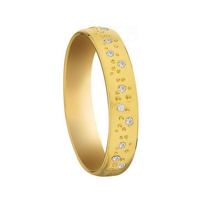 Découvrez Cette Alliance en Or Jaune 750/1000 (18 carats) Sa Finition Polie Met en Valeur les Diamants Ronds Naturels pour un Poids Total de 0.12 carat en Qualité HSI.