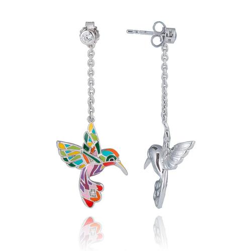 Boucles d’Oreilles Una Storia Colibri en Argent 925 Rhodié, Ornées d’Émail Multicolore Appliqué à la Main et Serties d’Oxydes de Zirconium. Hauteur : 5 cm, Largeur : 2 cm. Fermoir Poussette. Livraison Offerte en France Métropolitaine et en Corse. Bijouterie Cupillard Belfort : Revendeur Officiel des Bijoux Una Storia Laqués à la Main. BO121228
