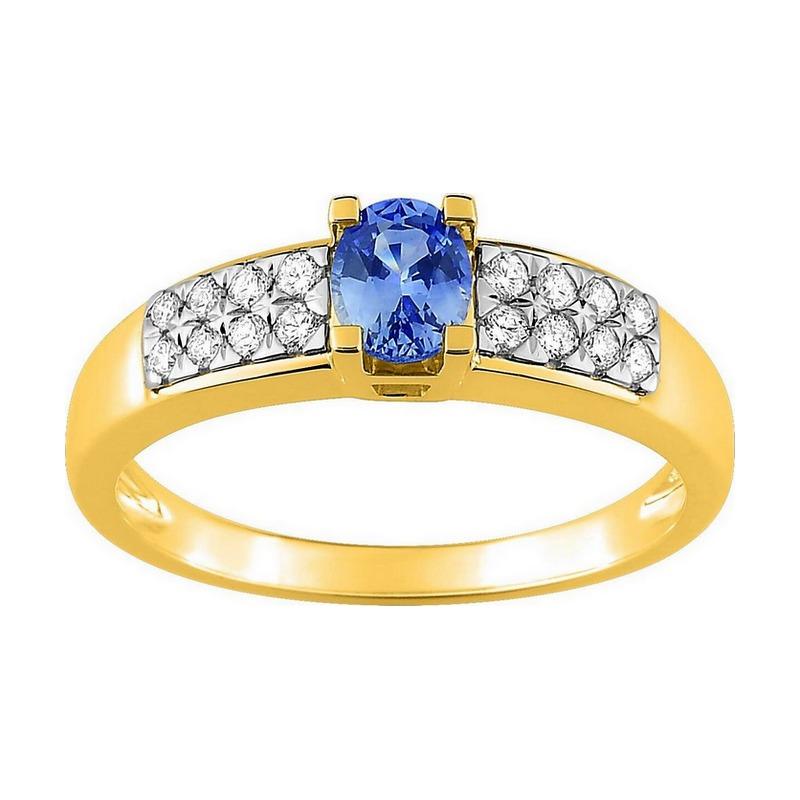 Bague Femme Saphir et Diamants Naturels en Or Bicolore 750/1000 (18 carats).