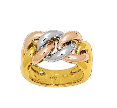 Magnifique bague pour femme tricolore en or 750/1000 (18 carats), forme maille gourmette,