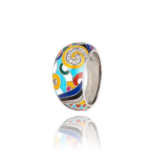 Bague Una Storia de la ligne Marina pour femme en argent 925/1000 rhodié laquée à la main et sertie d'oxydes de zirconium. Les tons lumineux et chatoyants sont empruntées à la richesse de la biodiversité Marine de la Polynésie.
