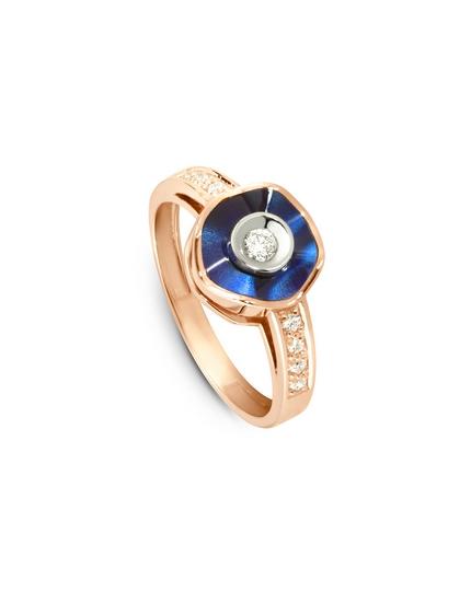 Bague Alain Clozeau, ligne Gaïa, en or rose 750/1000 (18 carats) et résine nacrée couleur bleu de Prusse, sertie de diamants naturels (0.13 carat au total). Livraison France métropolitaine offerte. Bijouterie Cupillard Belfort : Boutique Officielle des Bijoux Alain Clozeau. C2F705RBPDI