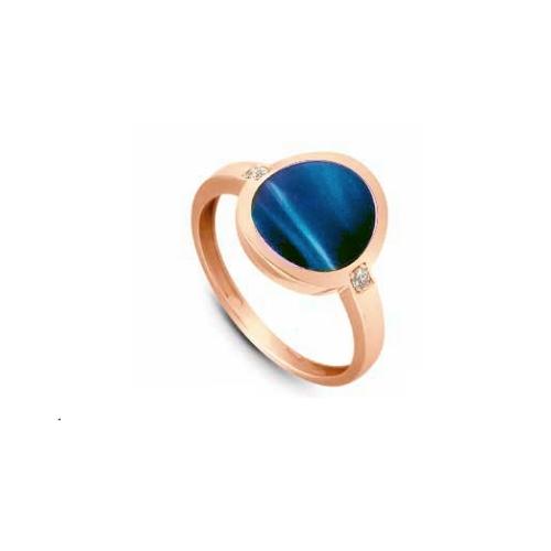 Splendide bague en or rose 750/1000 (18 carats) du créateur Français Alain Clozeau, de la ligne Mikado, pour femme en résine nacrée Bleu de Prusse, sertie de diamants naturels (0.04 carat au total).
