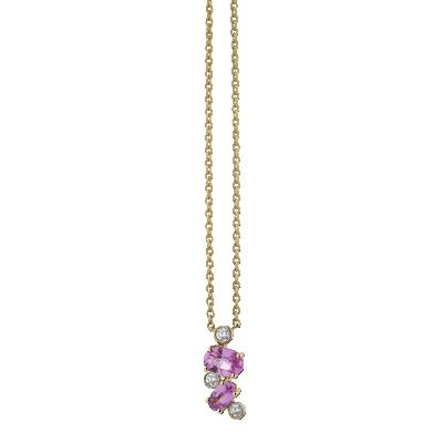 Bague de la ligne "Rendez Vous" en or jaune 750/1000 (18 carats) sertie de saphirs roses non traités provenant du Sri Lanka (0.95 carat au total) sertis griffes et de diamants naturels sertis clos (0.08 carat au total).