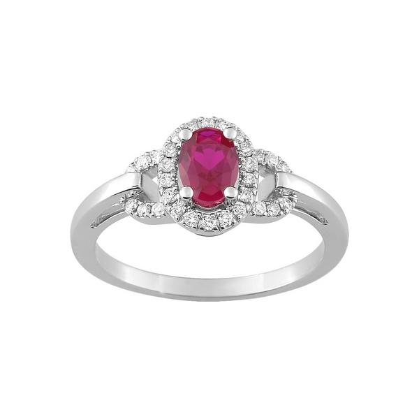 Bague femme rubis ovale et diamants naturels sertis griffes en or gris rhodié 750/1000 (18 carats).