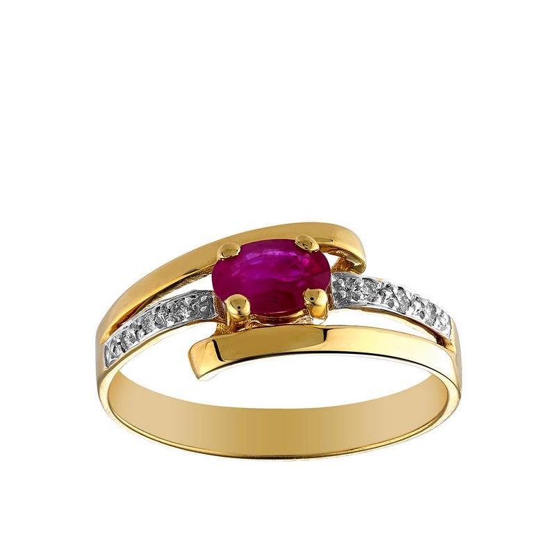 Bague femme rubis serti griffes et diamants naturels (pour un poids total de 0.06 carat) sertis griffes en or bicolore 750/1000 (18 carats).