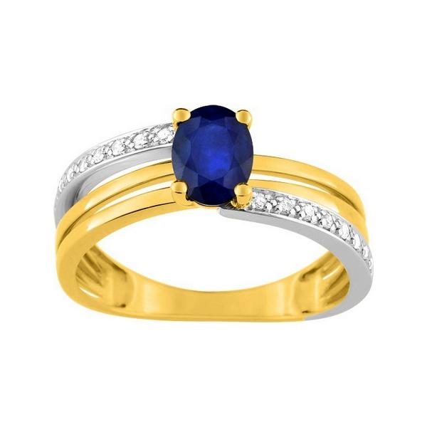 Bague femme saphir naturel de 1.09 carat et diamants naturels (pour un poids total de 0.08 carat) sertis griffes en or bicolore 750/1000 (18 carats) .