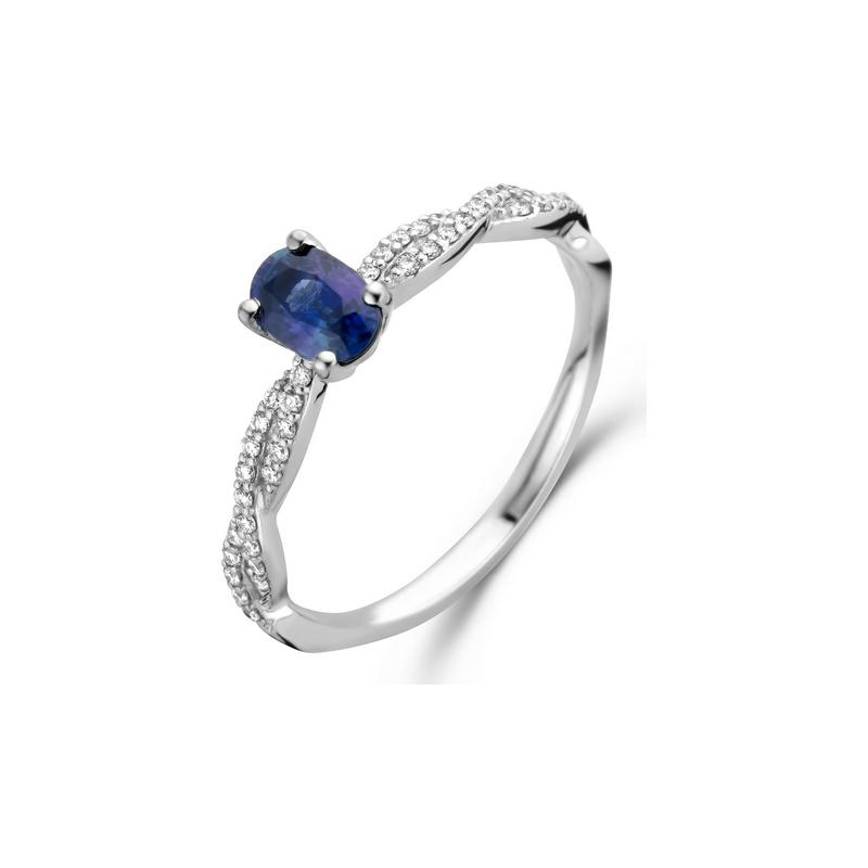 Bague Beheyt femme saphir ovale et diamants naturels en or gris rhodié 750/1000 (18 carats).