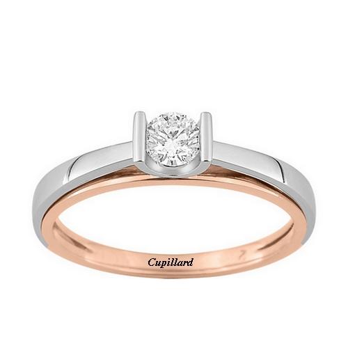 Bague femme solitaire diamant naturel 0.25 carat H-P1 serti barrette en or rose et or gris rhodié 750/1000 (18 carats).