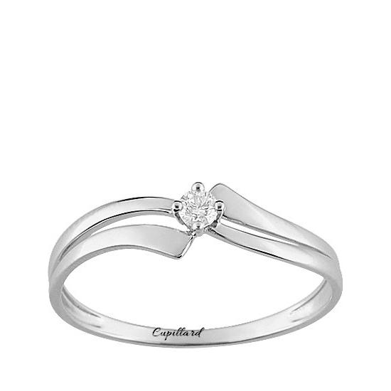 Bague de fiançailles femme croisée en or gris rhodié 750/1000 (18 carats), solitaire diamant naturel 0.05 carat H-P1 serti 4 griffes.