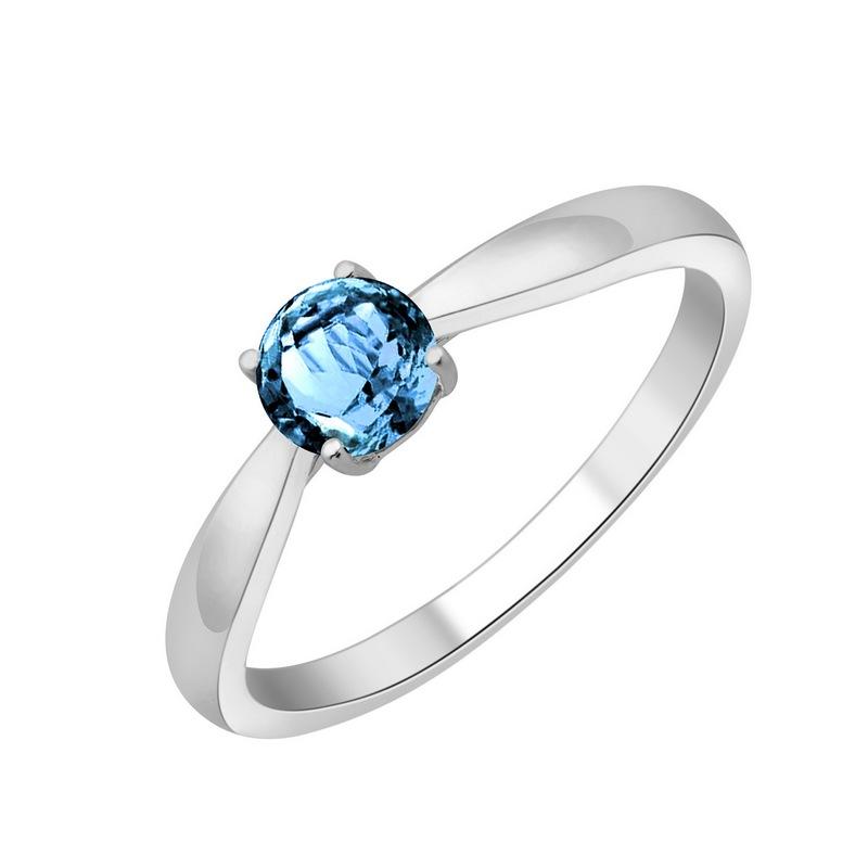Bague Topaze Sky Blue Ronde sur une monture 4 griffes en or gris rhodié 750/1000 (18 carats),