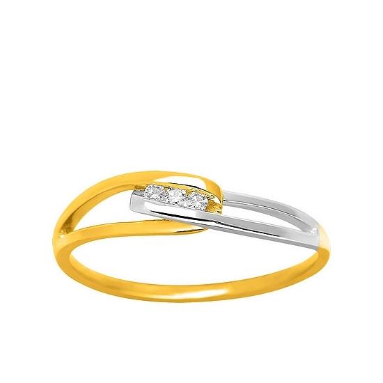 Bague femme or Jaune 750/1000 (18 carats) et rhodiage, Trilogie diamants naturels H-P1 (0.03 carat au total),